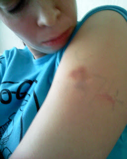 The best I have is a small brown bruise that appeared on my arm after last nights intra-league bout, mostly thanks to NiKilla, she has a matching set on her arms from me, see I can share too.
